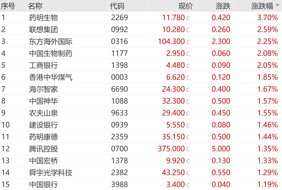 药明生物涨3.70%,联想集团涨2.59%,领涨蓝筹。