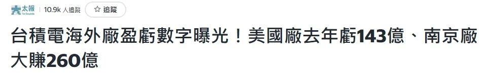 对比之下,台积电在中国大陆布局则大放异彩。数据显示,南京相关子公司去年获利259.54亿元,优于2023年获利217.55亿元,以及2022年获利204.86亿元。统计南京布局近三年都稳定获利200亿元以上。